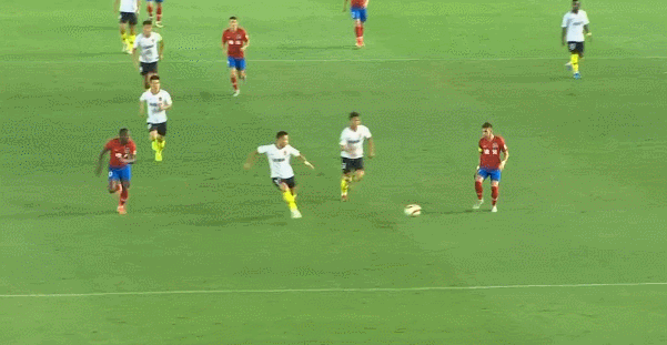 第46分钟,巴索戈前场中路接队友分球随即转身起脚抽射,皮球稍稍偏出立柱。赛至第52分钟,马斯切拉诺主罚前场任意球起右脚射门,皮球越过人墙击中费尔南多发生折射后稍稍高出横梁。第55分钟,周定洋与王上源完成战术角球配合,周定洋左路接王上源回敲起脚传中,冯卓毅前插到门前抢点头槌轰门命中,建业3-0领先。