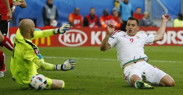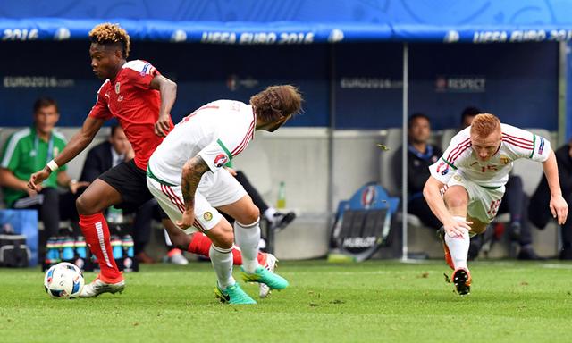 北京时间6月15日凌晨零点,2016年欧洲杯F小组的一场比赛在波尔多市政球场进行,奥地利迎战匈牙利。两队都有多名球员效力德国联赛,阿拉巴开场就打中立柱,来自汉诺威的绍洛伊先入一球,替补上场的斯蒂贝尔锁定胜局,最终匈牙利2-0战胜奥地利。