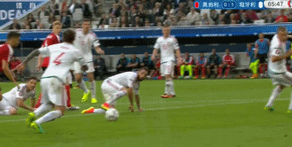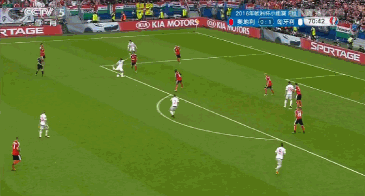 第43分钟,匈牙利攻到前场,中路分球到禁区右侧,茹扎克接球后在后卫封堵和门将出击的情况下,小角度打门打偏了。上半场双方战成0-0。