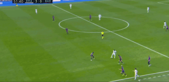 而针对巴萨整体阵型的前提,皇马第一时间会用长传来一击致命,两个进球都得益于中场的长距离传球。