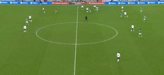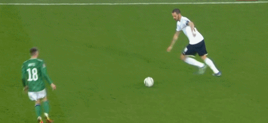 第9分钟,北爱尔兰反击,托纳利推倒带球的加文-怀特,吃到黄牌。↓