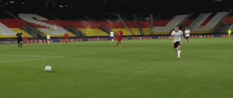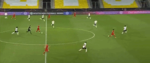 第35分钟,德国获得前场右侧任意球机会,基米希任意球传入禁区,这球从门前划过后出了底线。↓