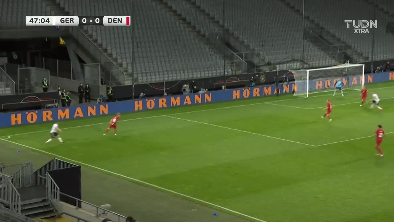 全场比赛结束,德国1-1丹麦。