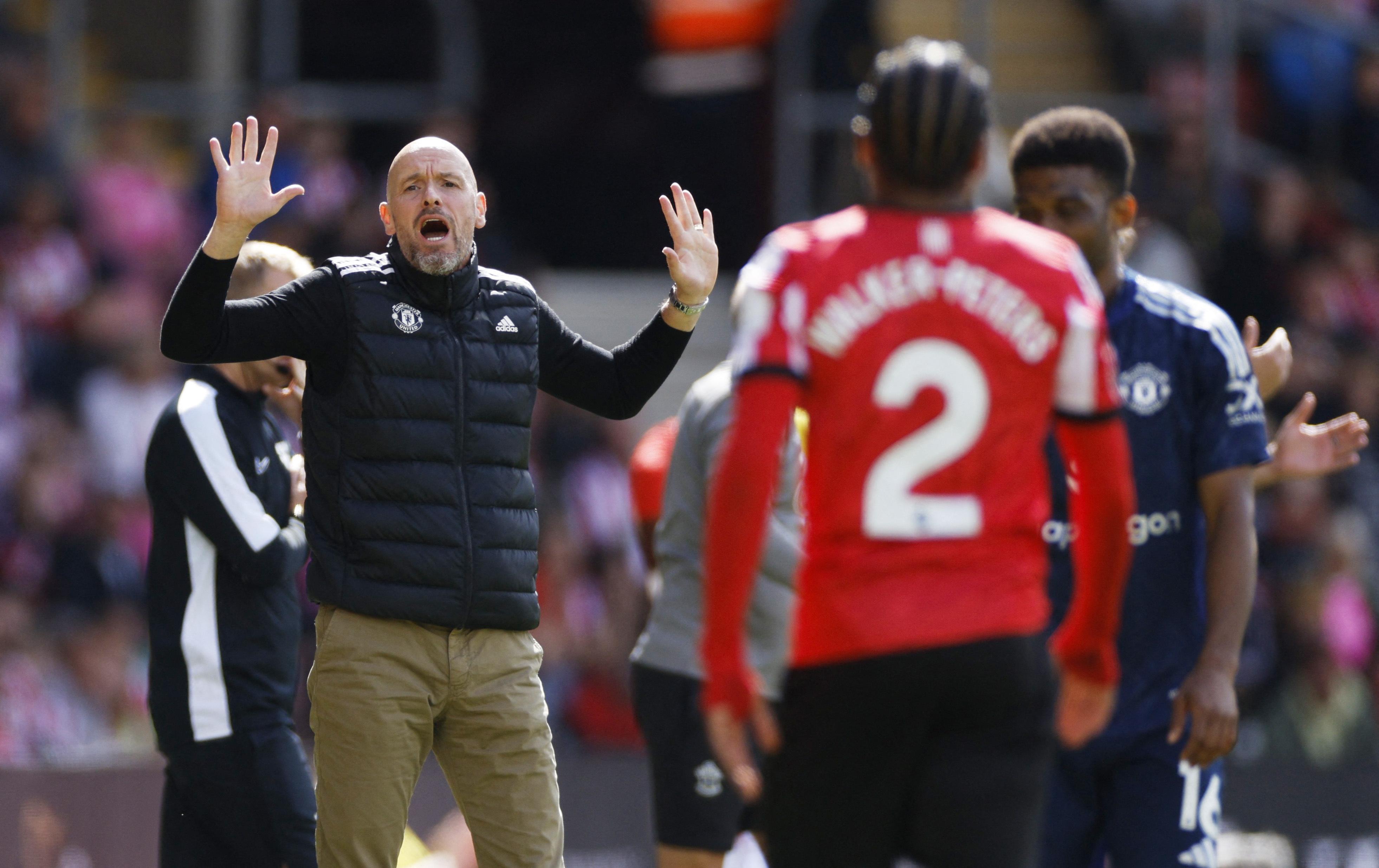 9月14日,曼联队主教练滕哈格(左)在比赛中。 新华社/路透