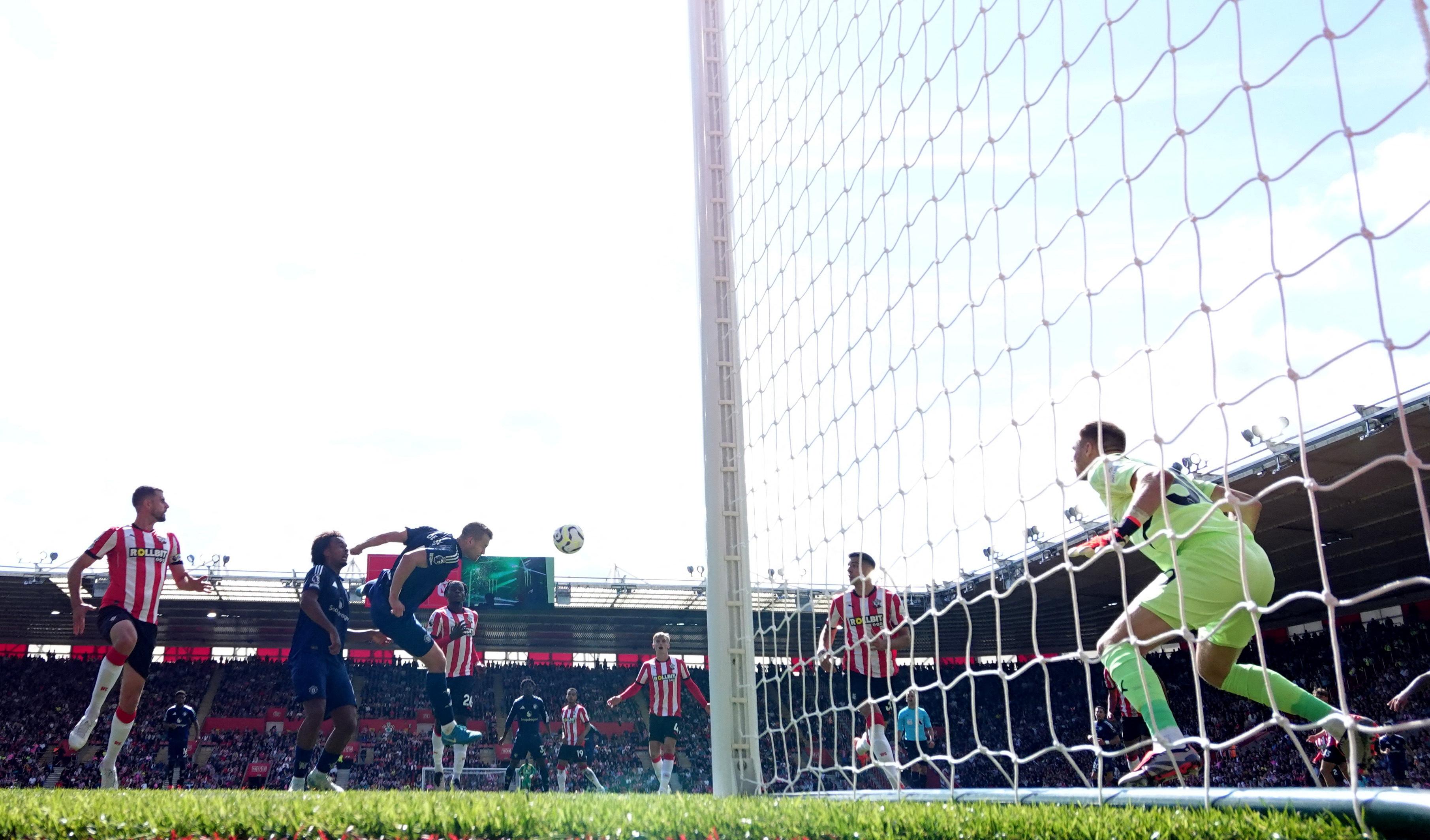 9月14日,曼联队球员德利赫特(右下)头球破门。 新华社/路透
