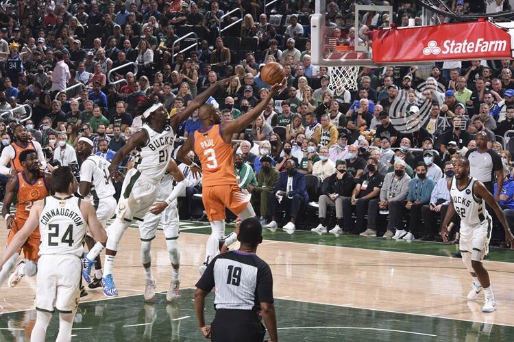 易边再战,双方你来我往,字母哥连投带罚得到7分止血。保罗外线连续出手,把分差保持在两位数。落后的雄鹿继续追分,米德尔顿、康诺顿命中三分,布克连续远投得手还以颜色。第三节结束,太阳88-78领先雄鹿。