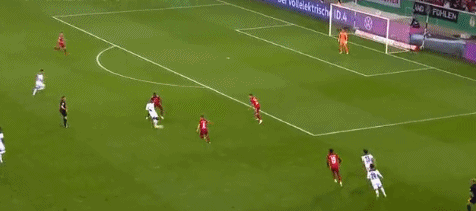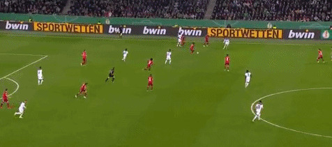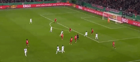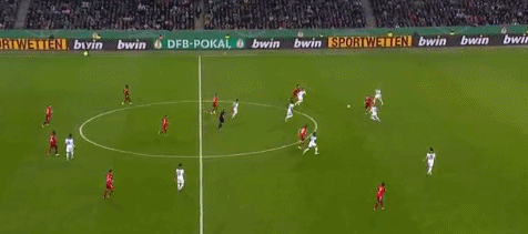 第35分钟,格纳布里直传,穆勒在禁区内和对手拼身体后再回传,格纳布里插上推射,索默倒地将球扑住。第44分钟,格雷茨卡送直塞,萨内插入禁区左侧再横传,门兴后卫抢在莱万之前将球破坏。上半场结束,拜仁意外地0-3落后。