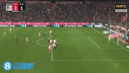 下半场易边再战,第49分钟,格雷茨卡在禁区外重炮轰门,索默倒地将球扑出。第52分钟,门兴后场开大脚,恩博洛在前场和于帕梅卡诺拼抢控球,在禁区内左脚抽射破门,门兴4-0领先拜仁。
