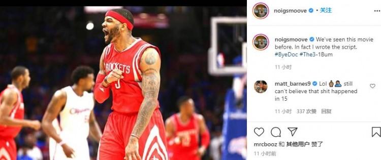 赛后,火箭旧将约什-史密斯更新个人Ins,发布了一张自己身穿火箭战袍对阵快船比赛时的赛场照,并配文说到:“我们好像曾经在哪里见过这一幕。哦,原来是我自己干的好事。#拜拜里弗斯”