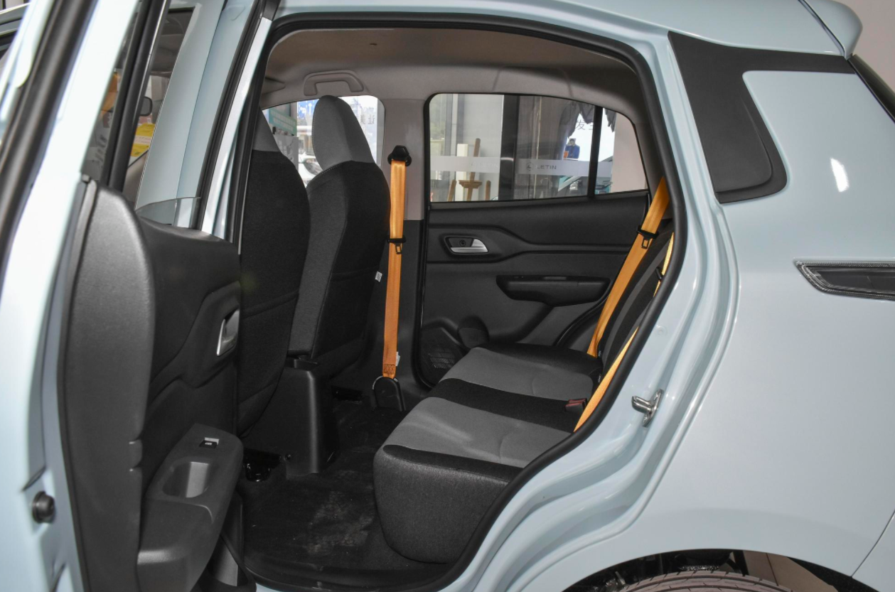 座椅采用的是织物材质包裹,拥有前后移动以及靠背角度调节,匹配了四个座位,座椅布局为2+2。这个价位的新能源汽车,大部分车内的空间都不会特别的夸张,当然了,日常接送小孩或者代步用车肯定是没有问题的,因为地台隆起程度基本上是全平的,这也是新能源汽车的优势之一。后排座椅支持整体放倒,对于车内空间利用率的增加还是很明显的。