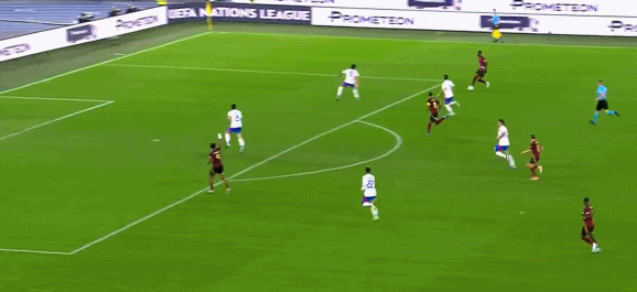 第48分钟,意大利后场精准长传,可惜弗拉泰西最后的射门打飞
