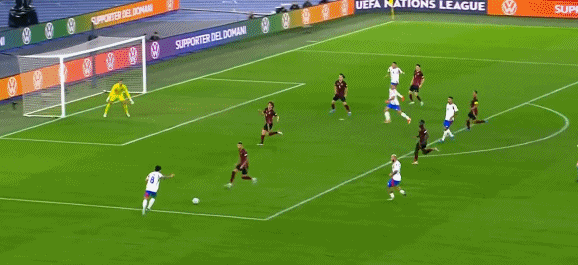 第1分钟,带球进场!迪马尔科助攻,坎比亚索闪击破门,意大利1-0