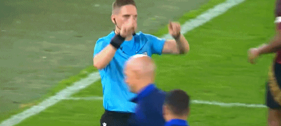 第38分钟,佩莱格里尼在禁区前沿回追时铲倒泰特,主裁判第一时间向佩莱格里尼出示一张黄牌,随后VAR介入,主裁判观看视频回放后作出改判,直接向佩莱格里尼出示红牌将其罚下。