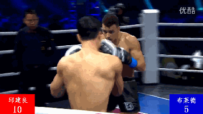 似乎肯姆的臂展更长,邱建良面对肯姆的强力攻势,选择了站位的游离,这样自己就不会失去本身的优势,虽然肯姆的拳头充满了力量,但打不到对手,也着实让肯姆无奈。