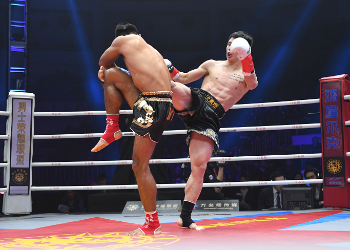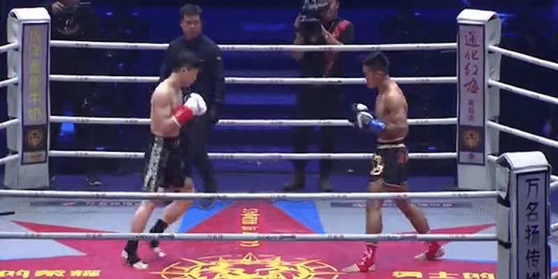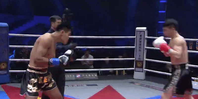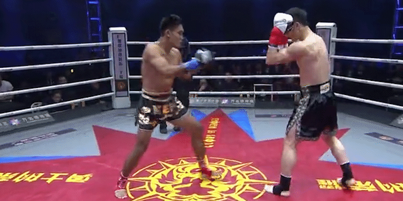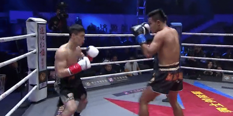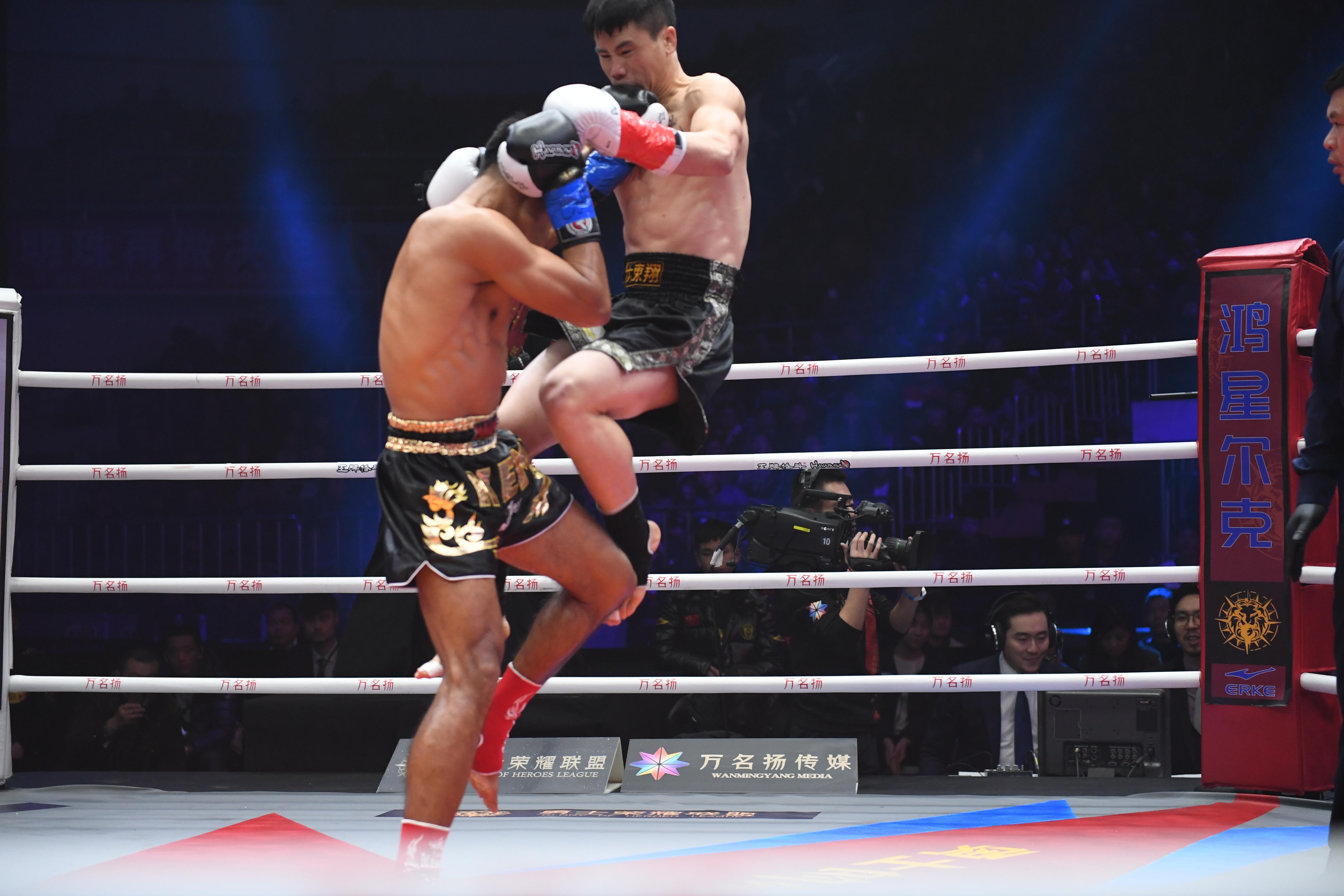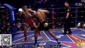 邱建良抓在近距离凭借出色的勾拳重创肯姆肋部,再利用一记势大力沉的转身后蹬打中同一位置,直接将泰国“国宝”肯姆KO,技惊四座!