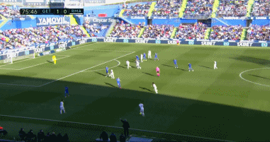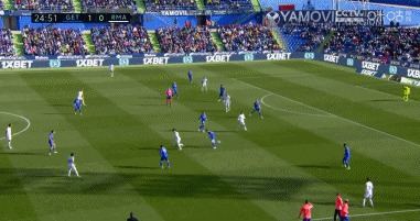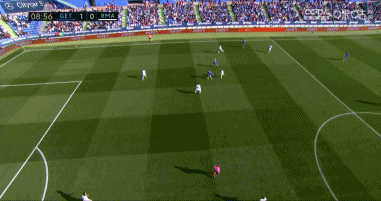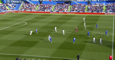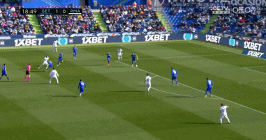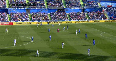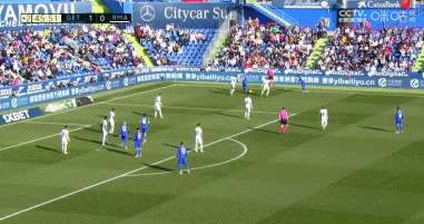 上半场第9分钟,赫塔菲前场进攻被皇马化解,但米利唐后场处理球失误,于纳尔禁区内断球之后顺势推射破门,赫塔菲1-0领先皇马!