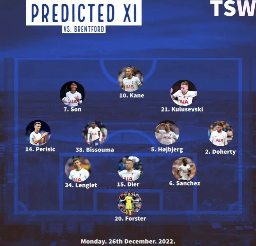 北京时间12月26日晚20:30,布伦特福德vs托特纳姆热刺。 世界杯后英超首场谁能拿下胜利?