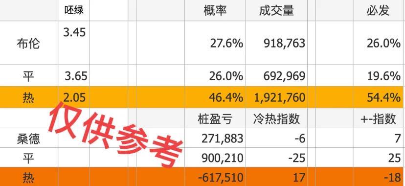 本场比赛必发交易规模适中