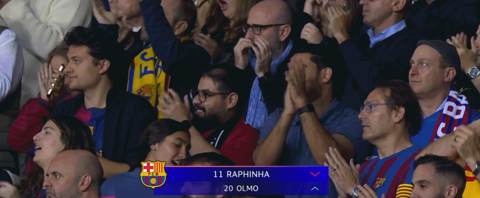 第76分钟,上演帽子戏法的拉菲尼亚被换下,奥尔莫替补登场