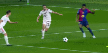 第23分钟,亚马尔1v2精彩摆脱抹过两人防守
