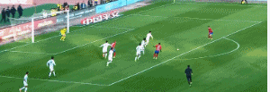 第77分钟建业长传球到禁区内,卡兰加在迎球抽射的时候,却将皮球给踢疵了,实在太尴尬了。