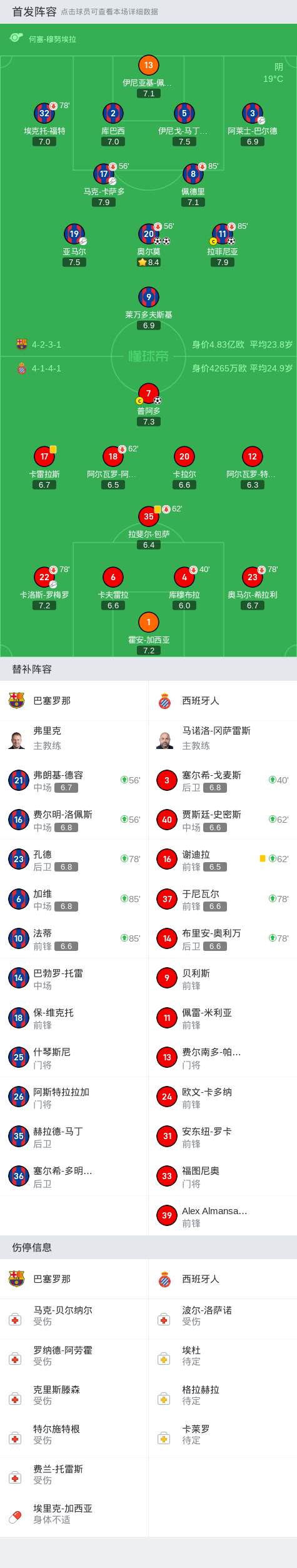 第29分钟,卡雷拉斯破门,但是因为助攻的队友体毛越位无效