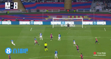 第32分钟,太轻松了!奥尔莫远射建功完成双响,巴萨3-0西班牙人