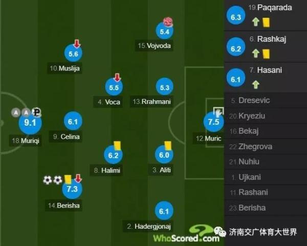 尽管科索沃近15场各项赛事10胜5平保持不败,但面对英格兰全面被动。英格兰半场结束前连入2球,第44分钟,斯特林反击中斜传,桑乔小禁区右上角斜射入网,4-1。半场补时,斯特林左路人球分过后突入禁区左侧传中,桑乔近距离轻松破门,5-1。