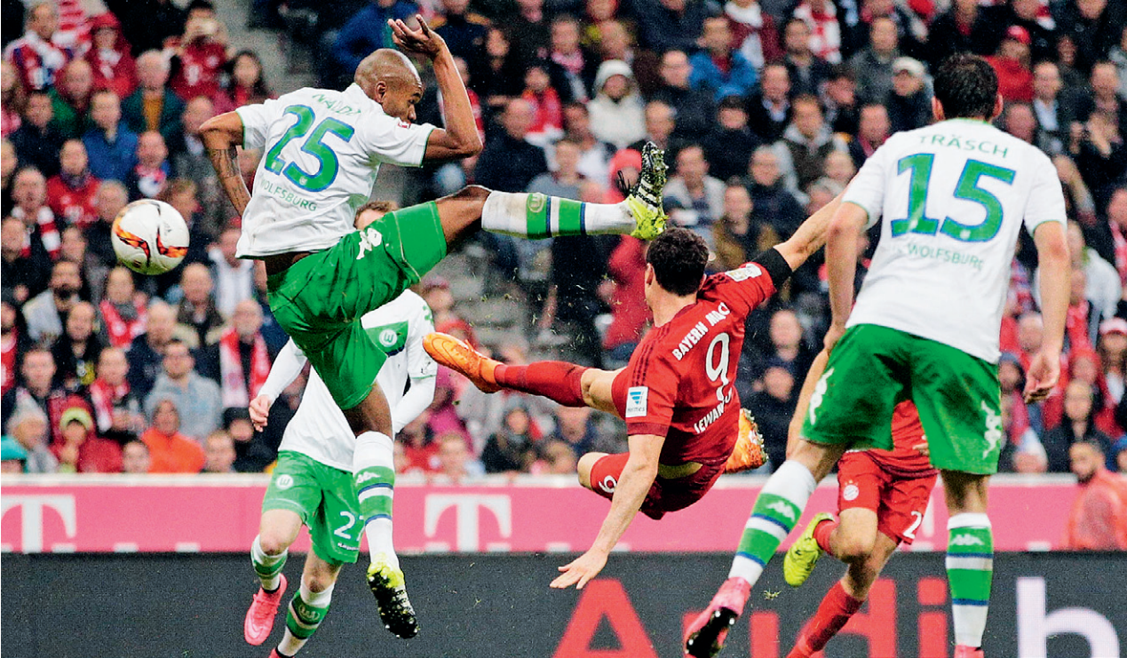 2015年9月,德甲开局5连胜的拜仁迎来了前5轮3胜2平、跨赛季连续15场正式比赛不败的沃尔夫斯堡。当年夏天,两队就在德国超级杯上有过交手,90分钟1比1打平,互射点球狼堡5比4胜出。2014-15,是沃尔夫斯堡队史第2个巅峰赛季,在比利时球星德布劳内带领下,“狼人”获得德甲亚军,并首次捧起了德国杯。