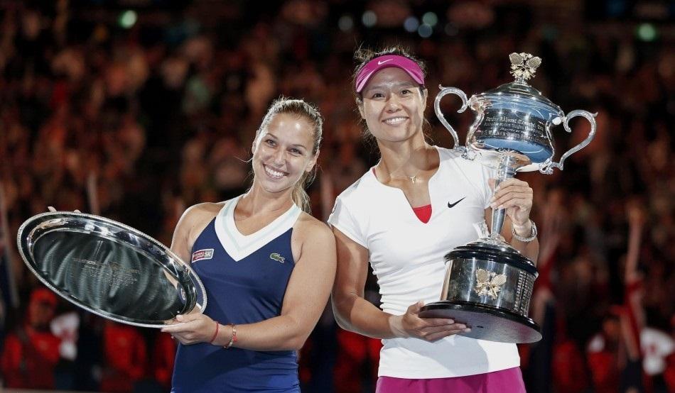 2014年澳网女单冠军李娜(右),亚军齐布尔科娃(左)