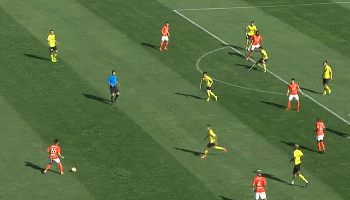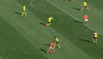 这一次的进攻发起,来自于郑智传球。随后皮球被给到了侧翼的张修维脚下,后者送出高质量的传中,可惜塔利斯卡的射门,打在门柱上弹出,错失良机。