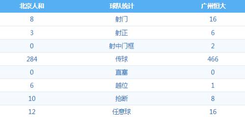 从统计数据可以看到,恒大在射门数、射正数上都翻倍于对手。甚至在传球数和任意球留数上,也优势明显。