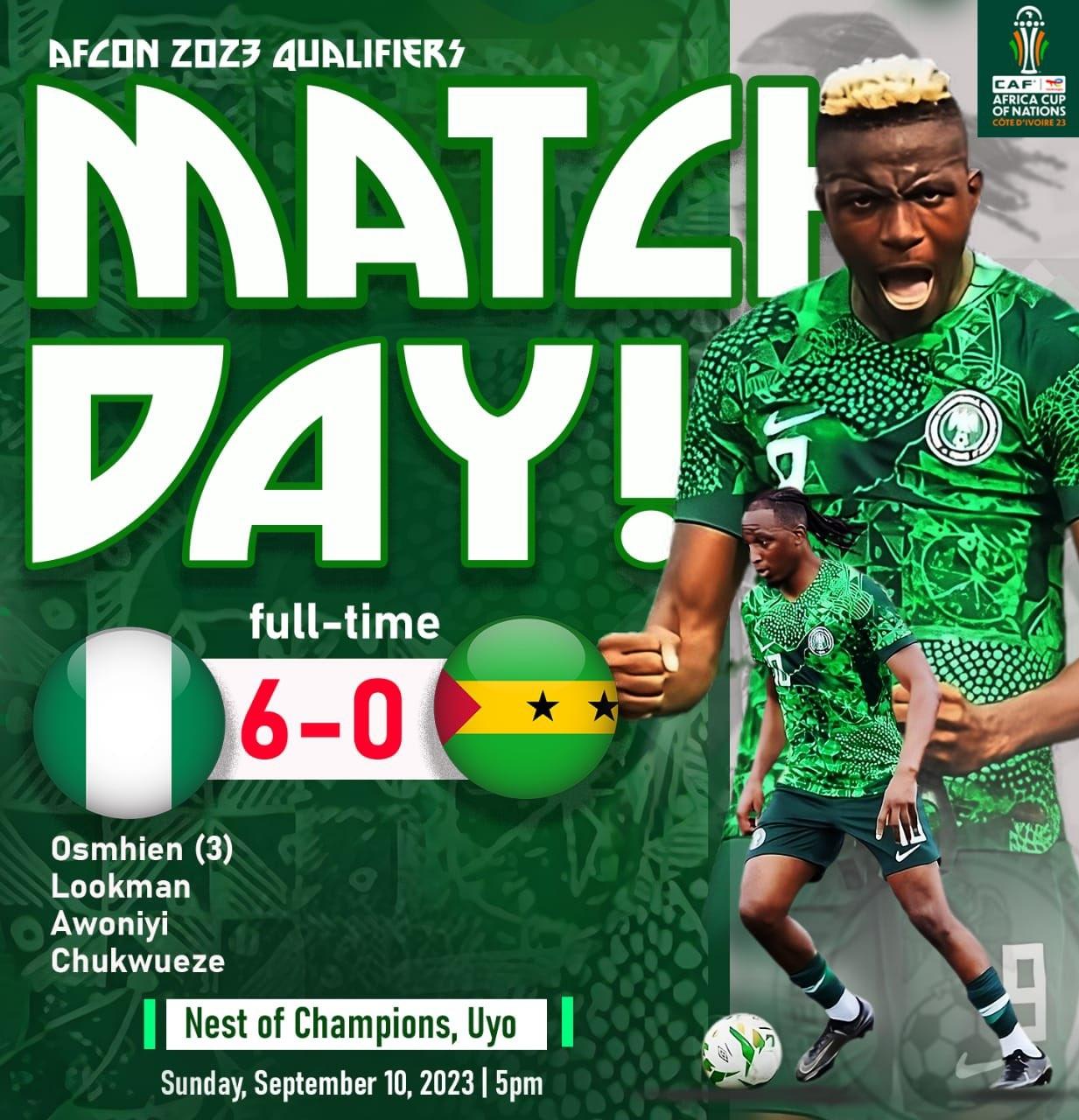 两队上一次在非洲杯预选赛中交锋,尼日利亚客场10球血洗对手,而今天第二轮回碰面,尼日利亚依然6-0大胜,现在6轮过后,尼日利亚5胜1平,积15分小组第一。