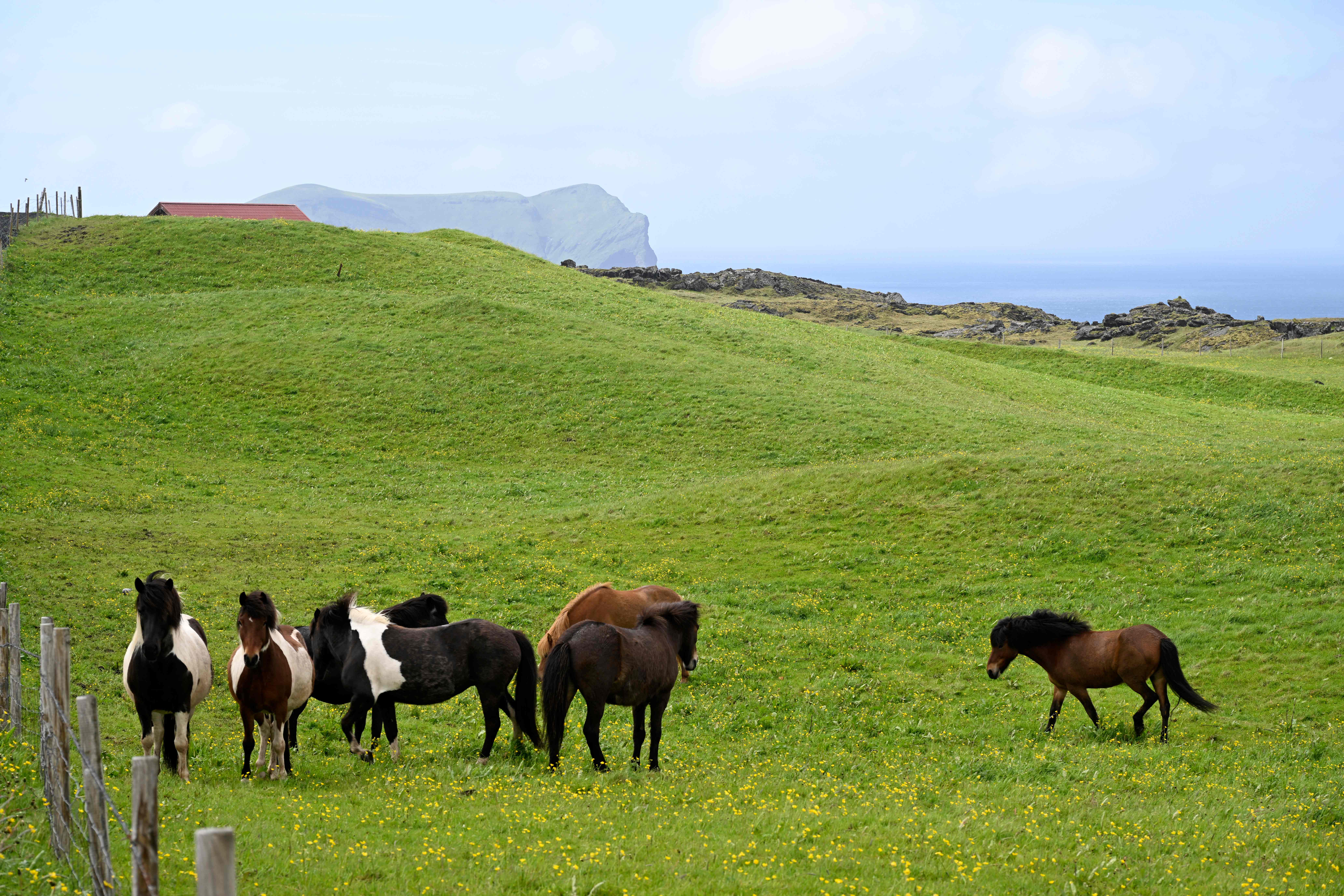 这是6月26日在冰岛韦斯特曼纳群岛拍摄的马群。 新华社/法新