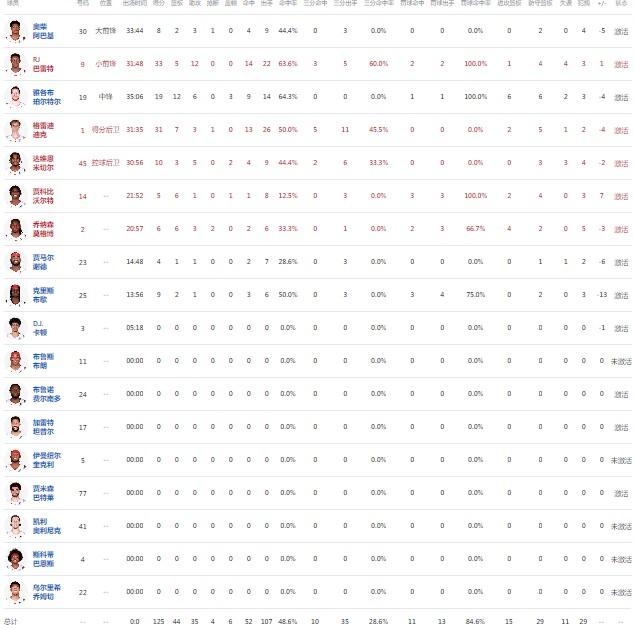 巴雷特33分5篮板12次助攻,波尔特尔19分12个篮板6次助攻3次封盖,迪克31分7个篮板,米切尔10分5次助攻2次封盖。