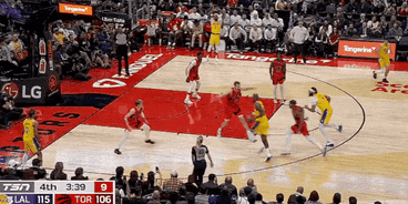 多伦多猛龙RJ-巴雷特33分5板12助,格雷迪-迪克31分7板3助,珀尔特尔19分12板6助;洛杉矶湖人安东尼-戴维斯38分12板2助,詹姆斯27分6板10助,里夫斯20分1板6助,布朗尼最后7.6秒登场。