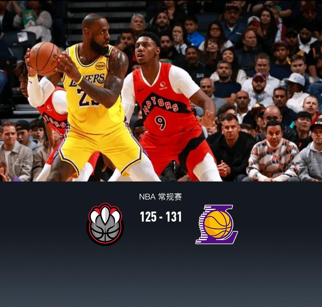 第四节,猛龙继续反扑,湖人詹姆斯带队给予回应维持10分上下领先,随后湖人八村塁、拉塞尔联手下起三分雨将分差拉大至15分,而猛龙没有就此放弃巴雷特、迪克继续带队反扑追至个位数,延续悬念,最后阶段猛龙犯规战术,湖人稳住局面连续罚球命中,布朗尼也在最后7.6秒登场,全场结束,湖人131-125猛龙。