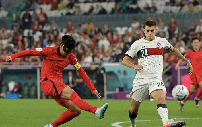 人员的调整以及主力的下场给了韩国队更多机会,在补时阶段孙兴慜反击持球高速推进,而另一边的黄喜灿则快速前插。尽管葡萄牙队三名球员回防干扰孙兴慜,但强度都不大,也可能都怕拿黄牌,让孙兴慜非常轻松地将球做给黄喜灿,后者直接迎球射门反超比分,杀死了比赛。