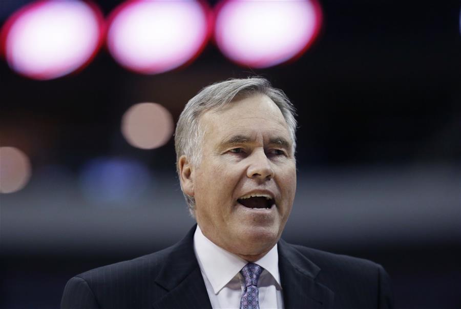 10月19日,火箭队主教练德安东尼在场边观战。当日,在2016-2017赛季NBA季前赛中,休斯敦火箭队客场以106比91战胜达拉斯小牛队。 新华社/美联
