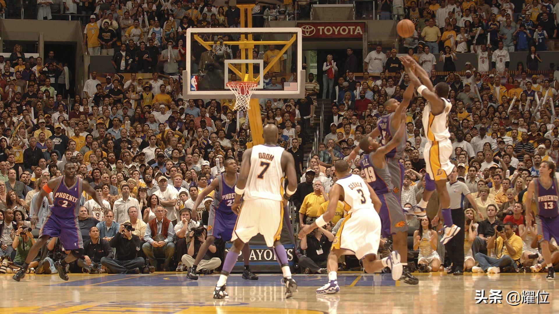 由于整体实力的差距,当时所有人都认为,太阳会在5-6场比赛内结束战斗。结果科比的串联进攻+第四场的超神绝杀+奥多姆对马里昂的全面压制+湖人全队的三军用命 ,使得前四场打完之后,太阳竟然以1:3的大比分落后!!差点让纳什的第二座常规赛MVP只能在家里颁奖……