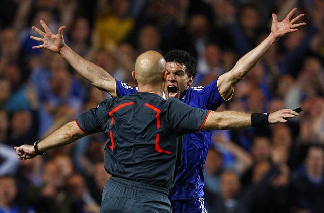 比赛的最后一个争议来自伊涅斯塔扳平比分之后。此时切尔西大举进攻试图挽回败局,巴拉克的凌空抽射疑似打在了防守球员的手臂上,然而位置极佳的赫宁认为这并不是一个点球,示意比赛继续。随后就出现了我们印象深刻的一幕,无法接受这一判罚的巴拉克咆哮着对赫宁穷追不舍。
