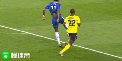 第26分钟,德罗巴单刀突入禁区,在阿比达尔防守下摔倒,主裁判赫宁示意比赛继续。