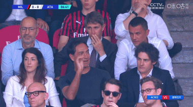 第7分钟,镜头给到看台,米兰高层及传奇后卫内斯塔均来到现场观战。