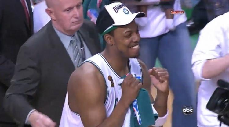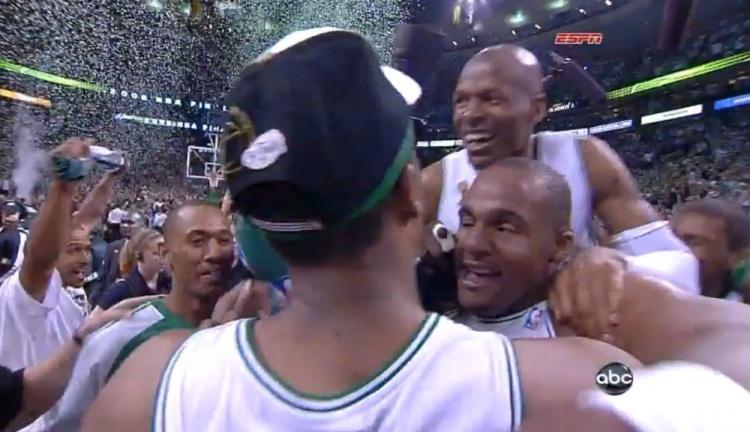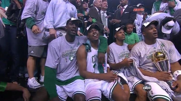 当时,皮尔斯30岁、雷-阿伦32岁、加内特31岁均是生涯第一次拿到总冠军。