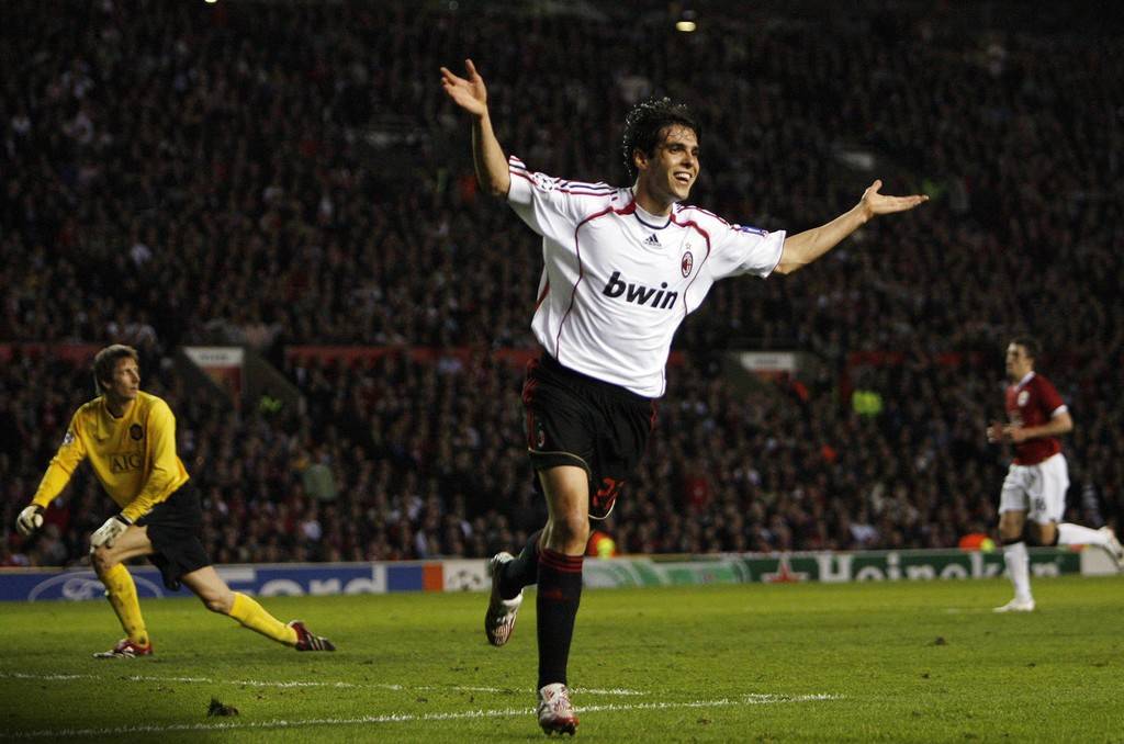 第37分钟,卡卡前场左侧接球后连续摆脱三名防守球员的包夹获得单刀机会切入点球点附近推射破门。米兰2-1曼联。