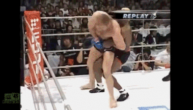 对比,拳法ko的迅猛和腿法ko的华丽,以摔法直接将对手KO,通常更加具有视觉震撼效果,在早年PRIDE综合格斗大赛中,就有三场经典战役中的摔法尤为惊艳,其中两场KO,另外一场被称为传奇,至今仍不失为MMA擂台中的摔法典范。
