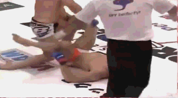 但比起猿人摔断樱庭志和锁骨更刺激的,是美国狼人昆顿.杰克逊砸摔巴西之虎里卡多.阿罗那,巴西之虎阿罗那出身降服式摔跤,站立打击技术十分粗糙,但摔法精湛力量骇人,在与美国狼人昆顿展开角逐时,阿罗那以三角锁控制住狼人颈部,一旦动作成型必定能将狼人成功绞杀,但谁也不会想到,昆顿以不可思量的野蛮力量将正在施展锁技的阿罗那高举过头顶,然后利用强大腰部力量和阿罗那身体惯性将其狠狠拍在地板上,巴西之虎阿罗那被当场KO,而这一招“深水炸弹”,则成为狼人格斗生涯中的辉煌顶点。