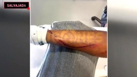 电视六台晒出了马尔文在赛后的腿部照片,可以看到有一道很长的大口子,而对手前锋马奇斯的这个动作连黄牌都没有得到。