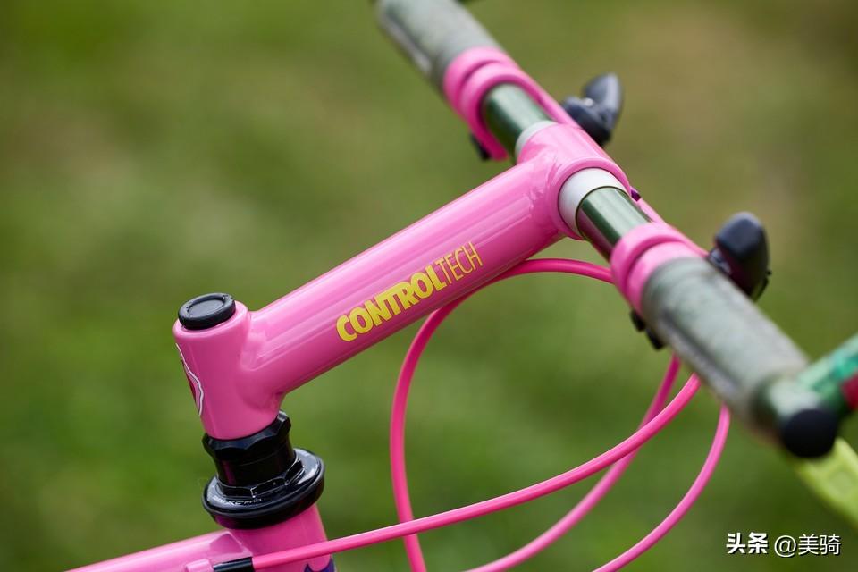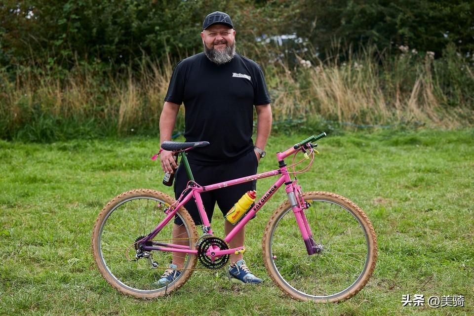 这辆自行车是 Dave Broadbent的项目,到目前为止,他已经投入了60多个小时来重新打造它,但对于最终是否能完成它有点犹豫不决。Broadbent为这辆自行车赋予了大量的粉色,曲柄组和把立的漆水也与车架的颜色所匹配。前叉有点像混合产物,由于与Manitou转向管尺寸兼容性的问题,使用了 Manitou1的下半部分和内管,与Shocktech叉冠和舵管结合在一起。