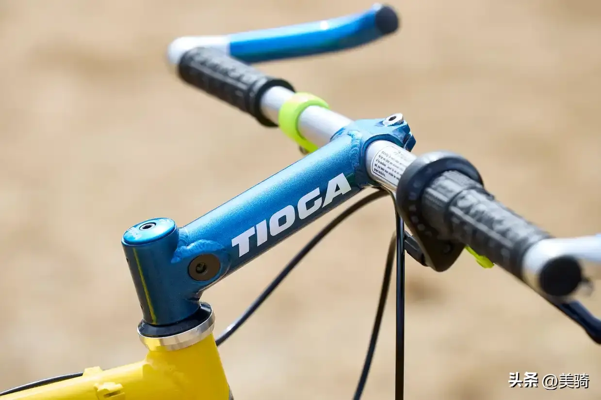 车把部是配有牛角把的560毫米TiogaDL-2001车把,牛角部分是150毫米Alchemy AL2车把,车把经过粉末涂层处理,与Tomac的色调相匹配。